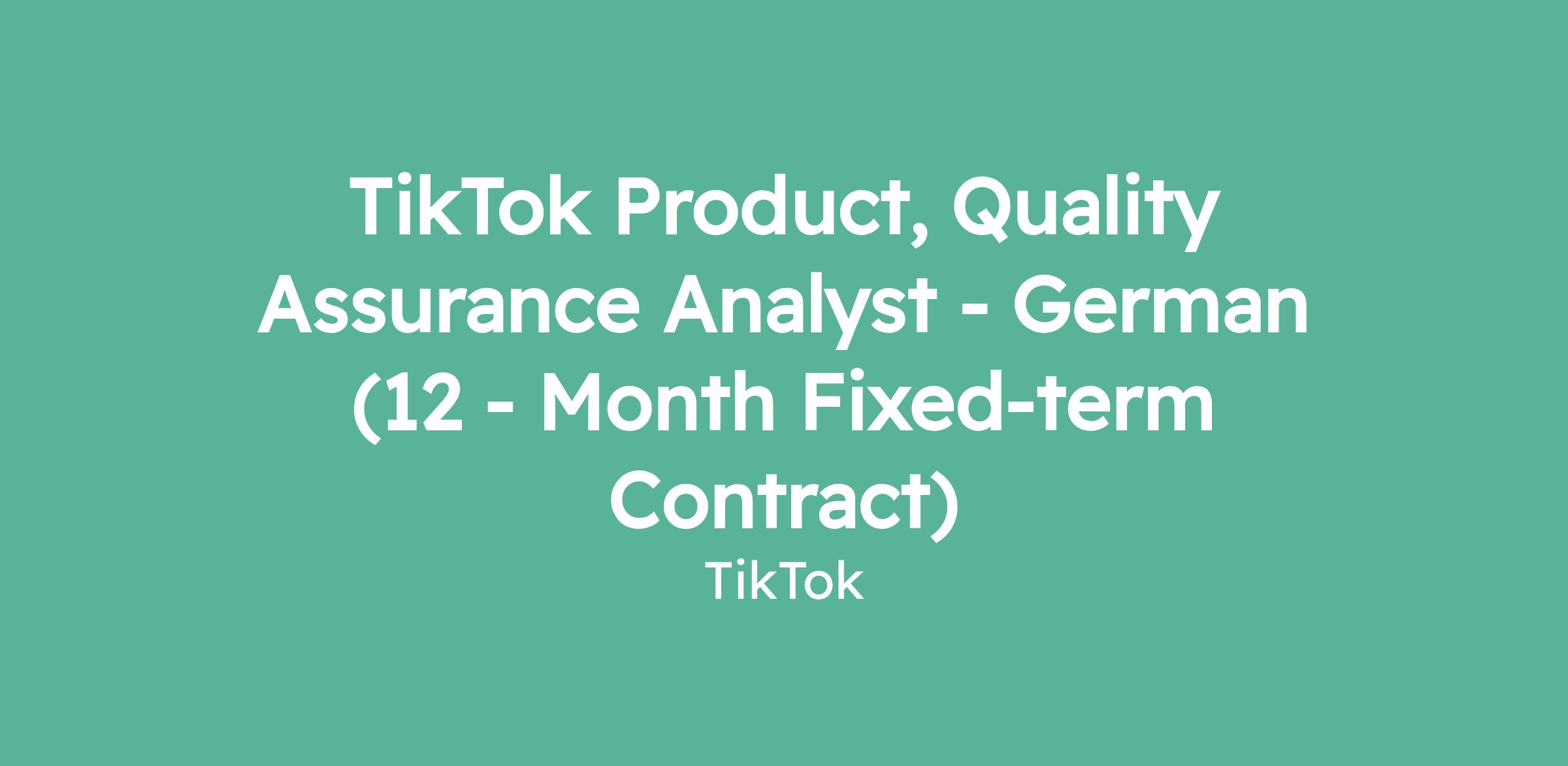 TikTok Product, Quality Assurance Analyst - German (12 - Month Fixed-term Contract)