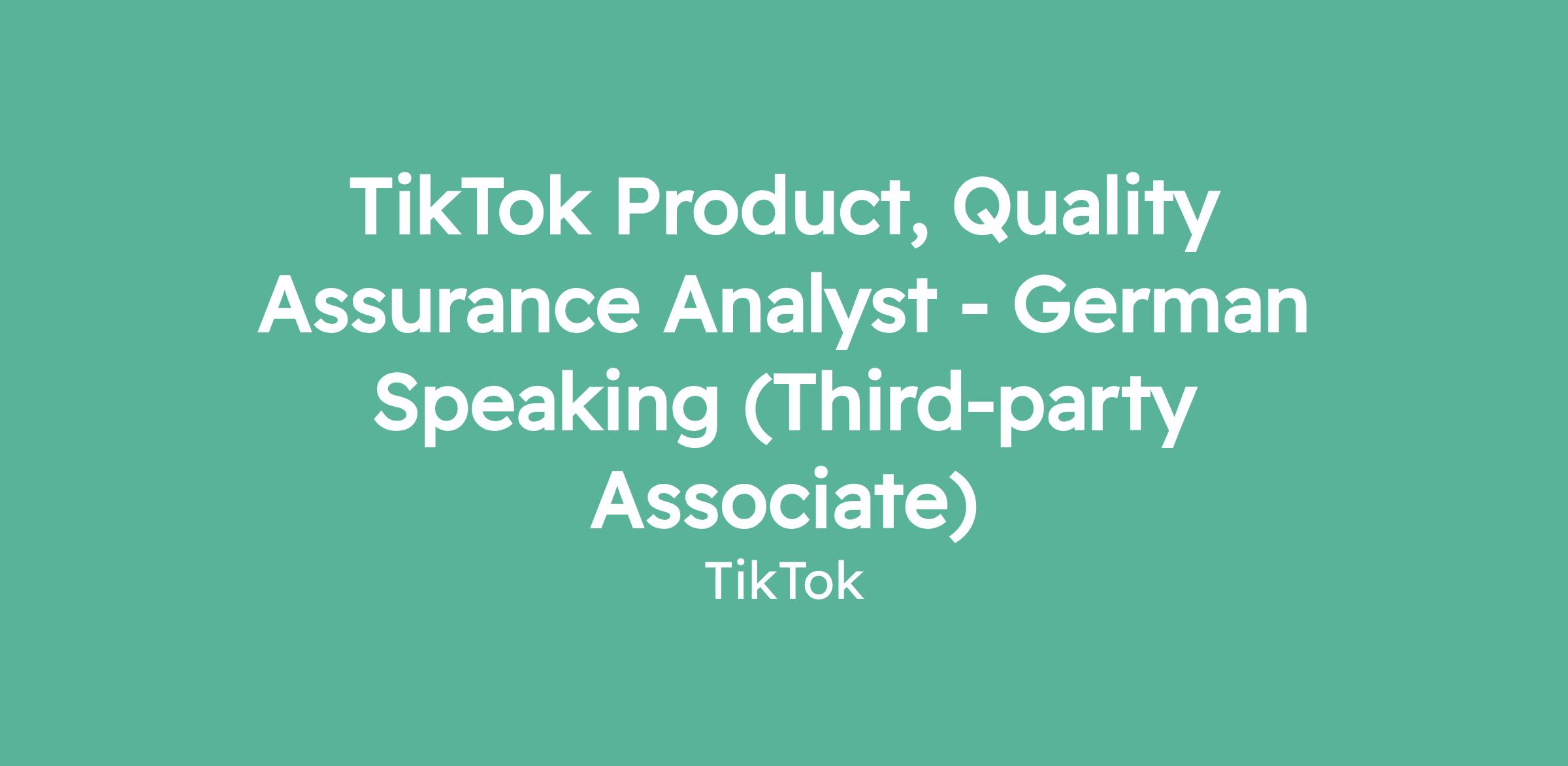 TikTok Product, Quality Assurance Analyst - German Speaking (Third-party Associate)