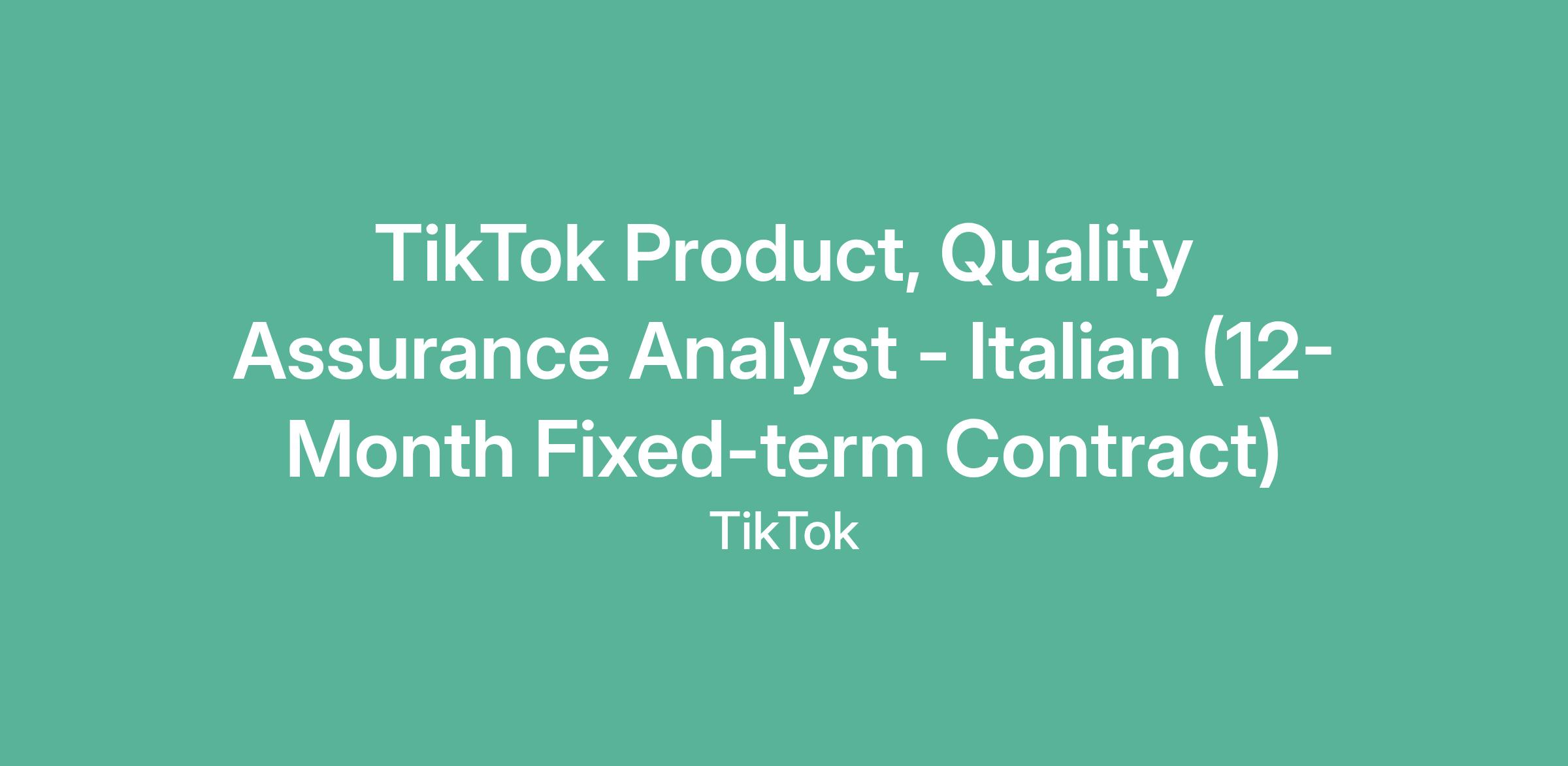 TikTok Product, Quality Assurance Analyst - Italian (12-Month Fixed-term Contract)
