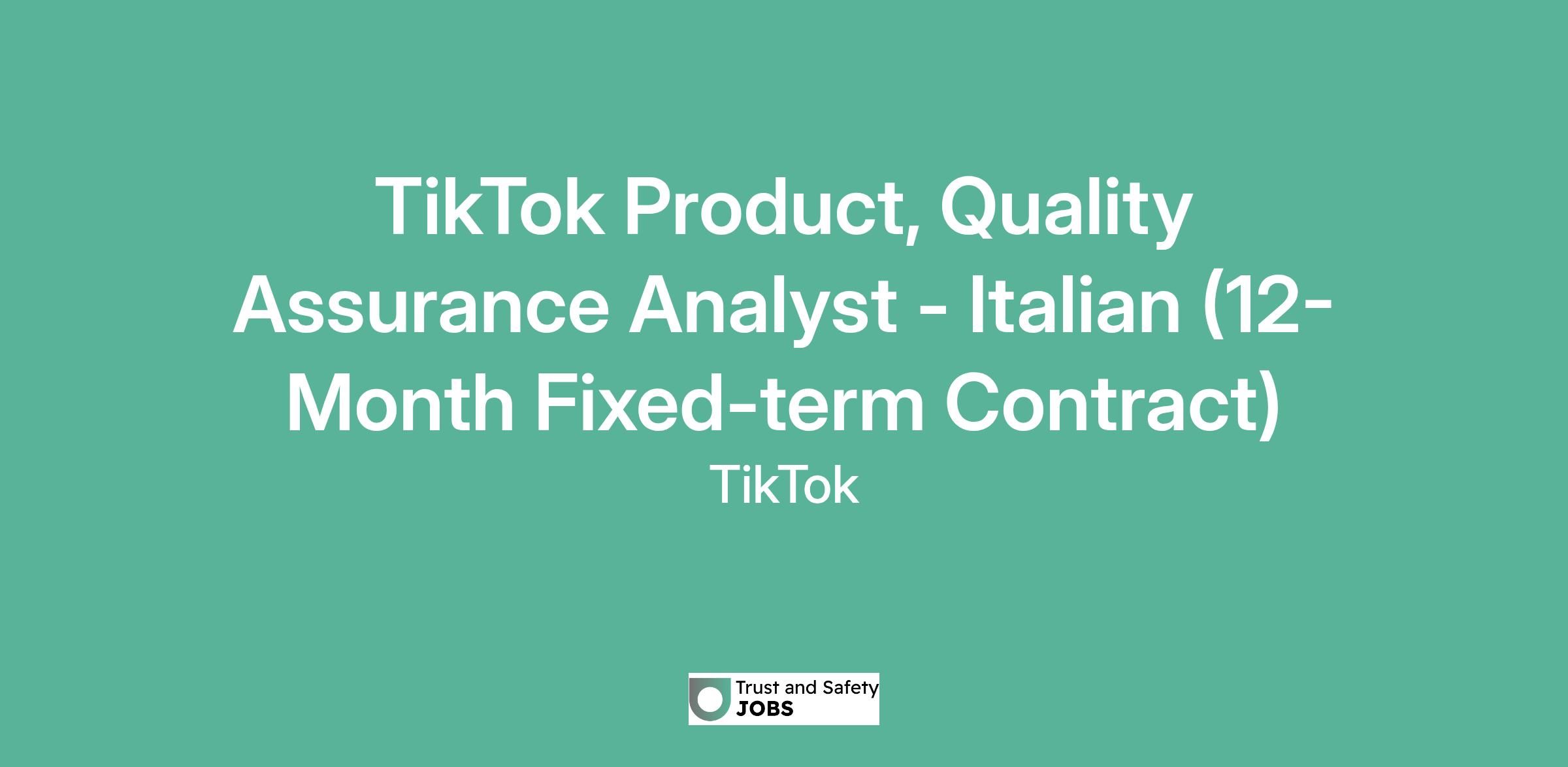 TikTok Product, Quality Assurance Analyst - Italian (12-Month Fixed-term Contract)