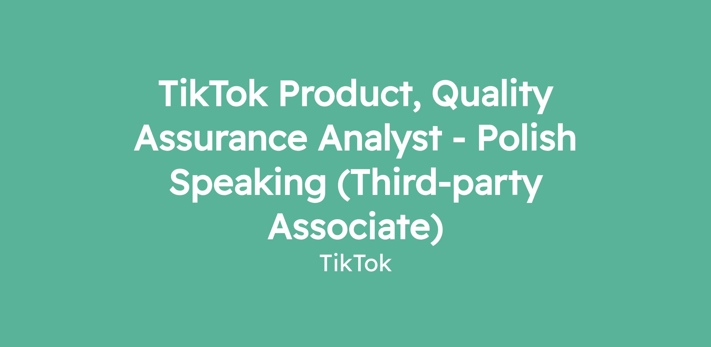 TikTok Product, Quality Assurance Analyst - Polish Speaking (Third-party Associate)