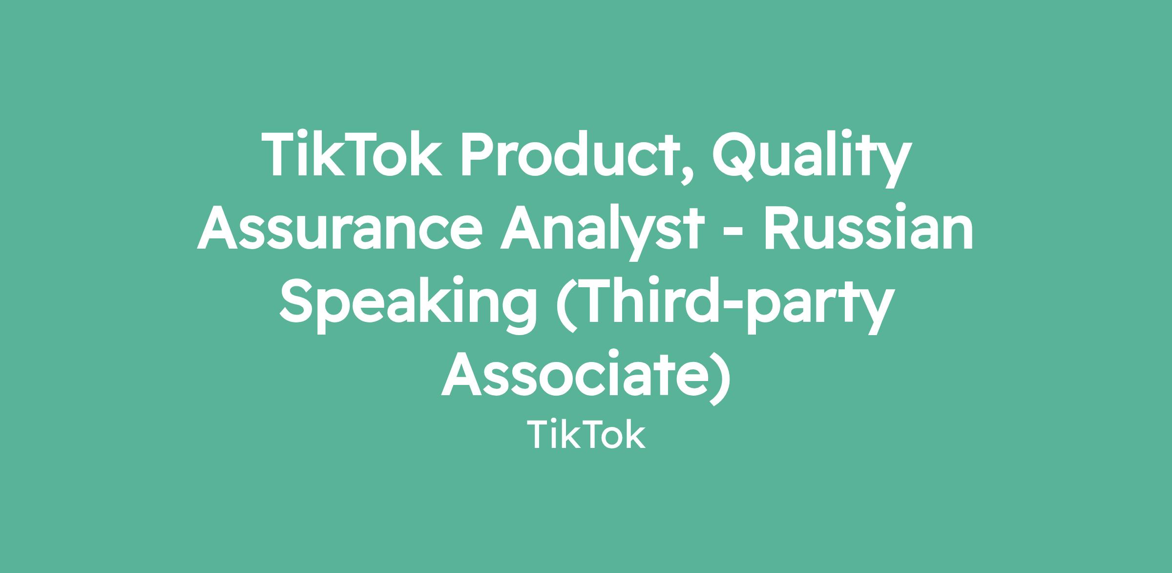 TikTok Product, Quality Assurance Analyst - Russian Speaking (Third-party Associate)