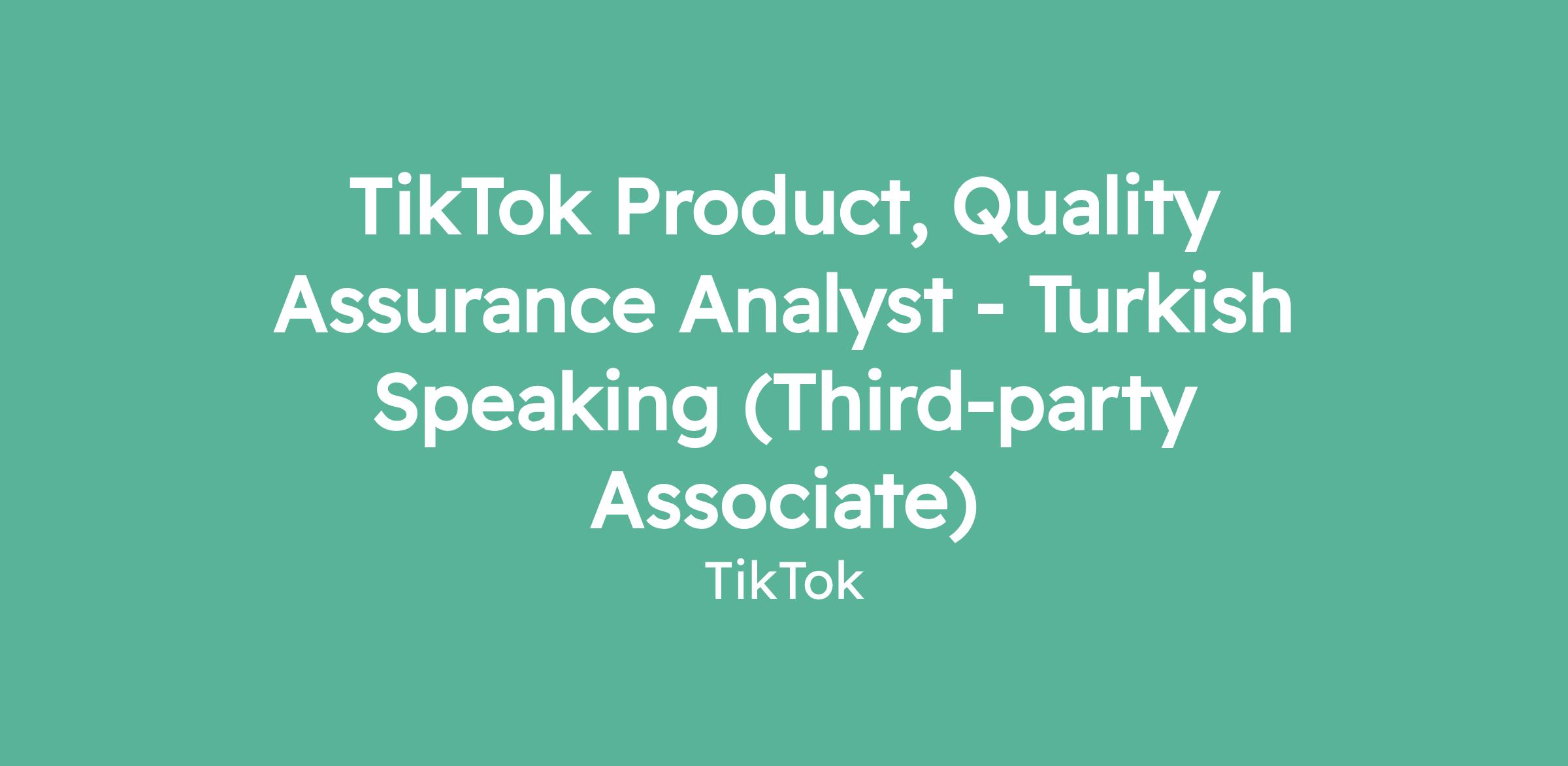 TikTok Product, Quality Assurance Analyst - Turkish Speaking (Third-party Associate)
