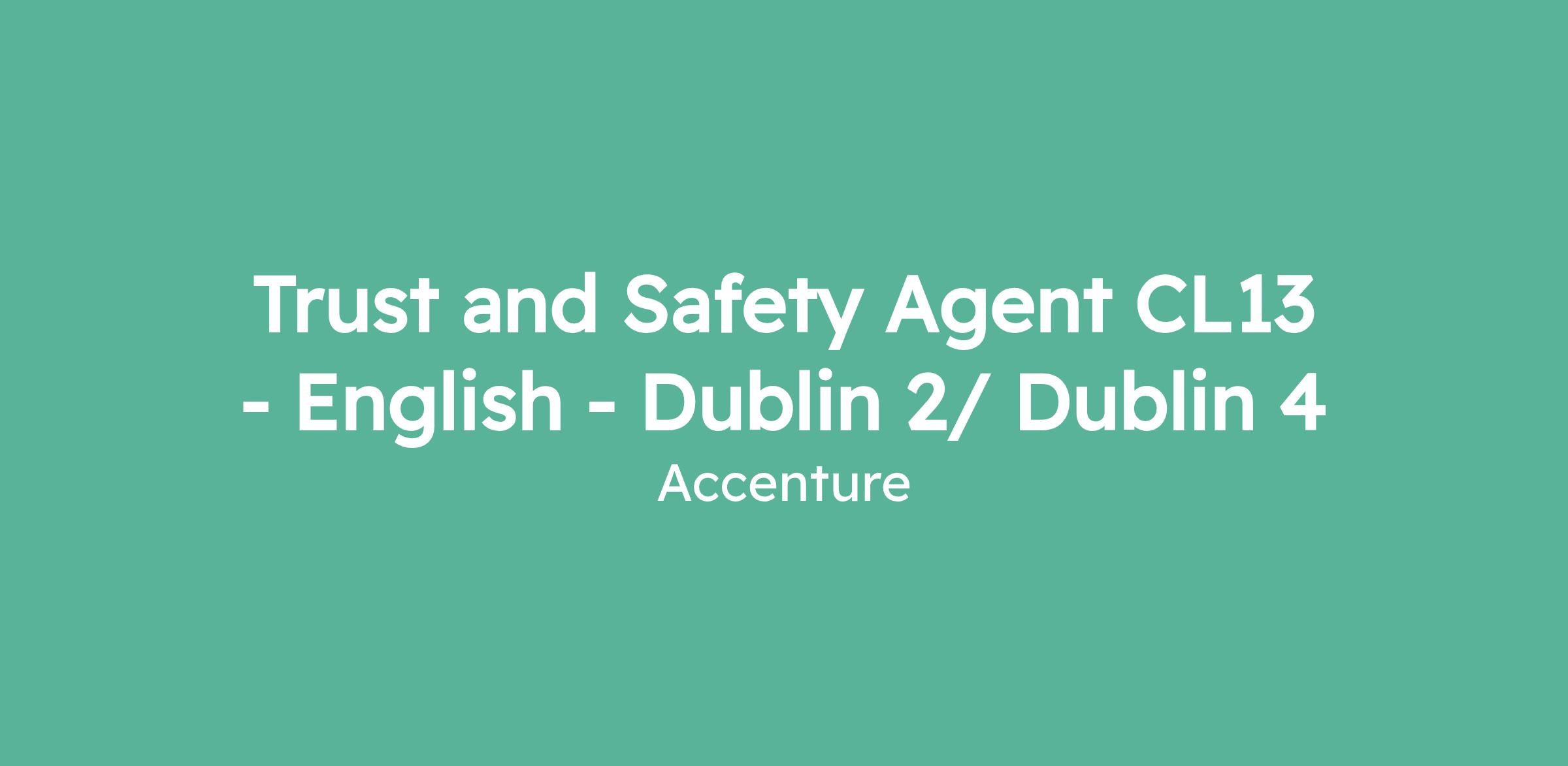 Trust and Safety Agent CL13 - English - Dublin 2/ Dublin 4