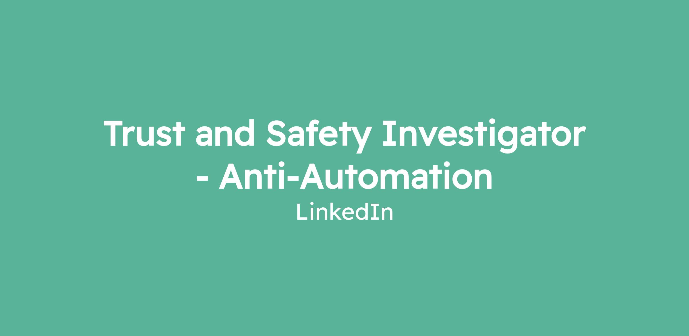 Trust and Safety Investigator - Anti-Automation