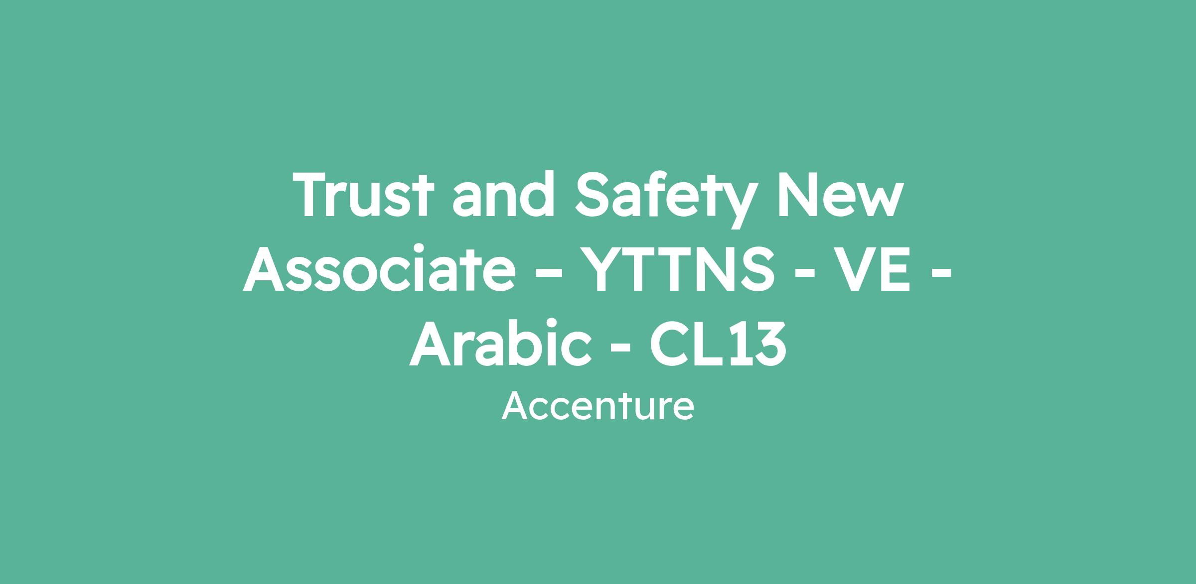 Trust and Safety New Associate – YTTNS - VE - Arabic - CL13