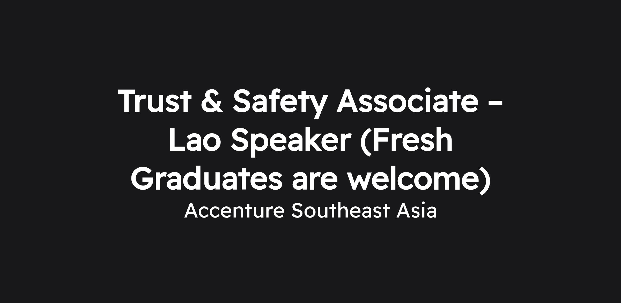 Trust & Safety Associate – Lao Speaker (Fresh Graduates are welcome)