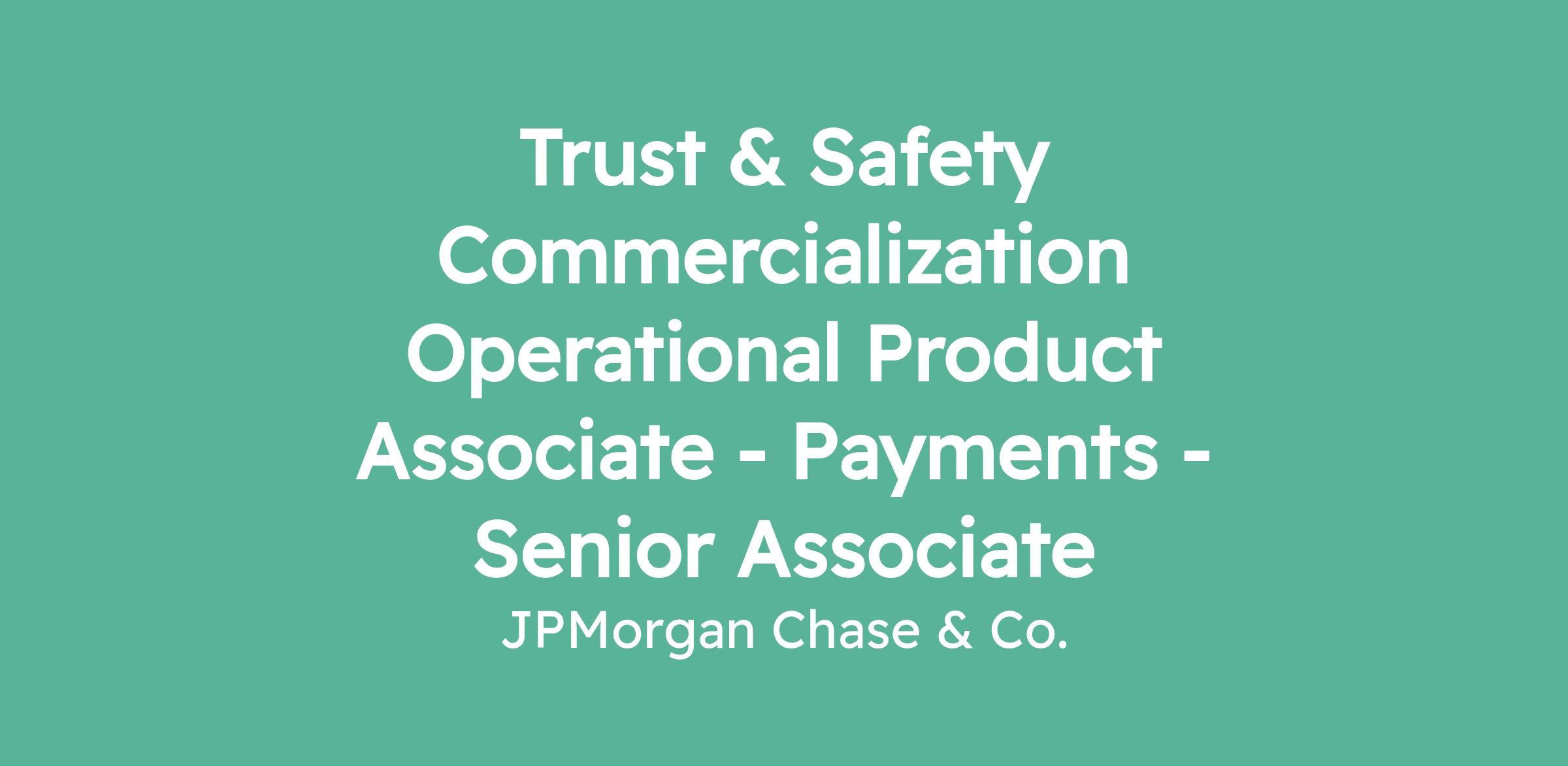 Trust & Safety Commercialization Operational Product Associate - Payments - Senior Associate