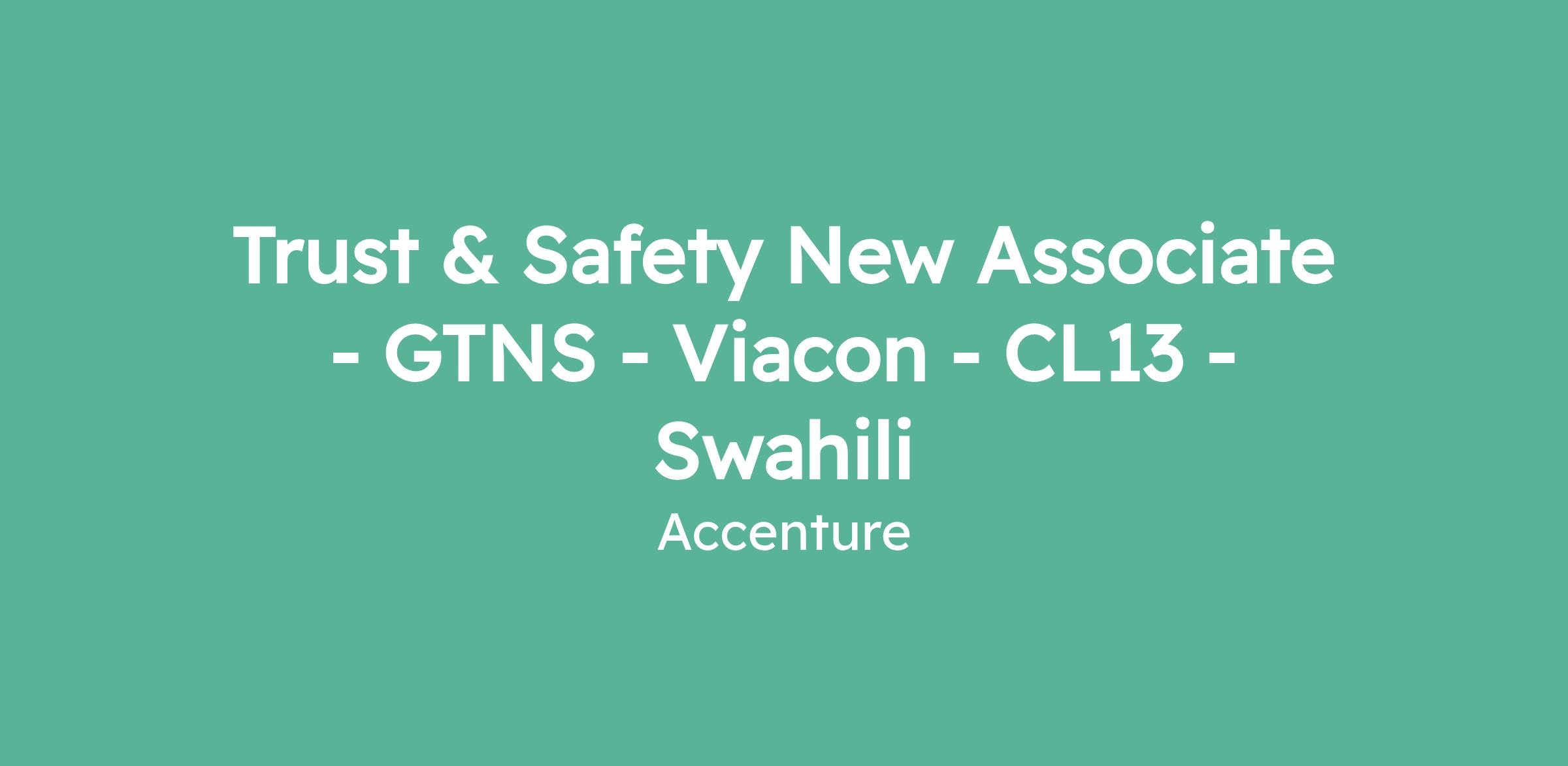 Position: Trust & Safety New Associate - GTNS Viacon CL13 - Swahili
