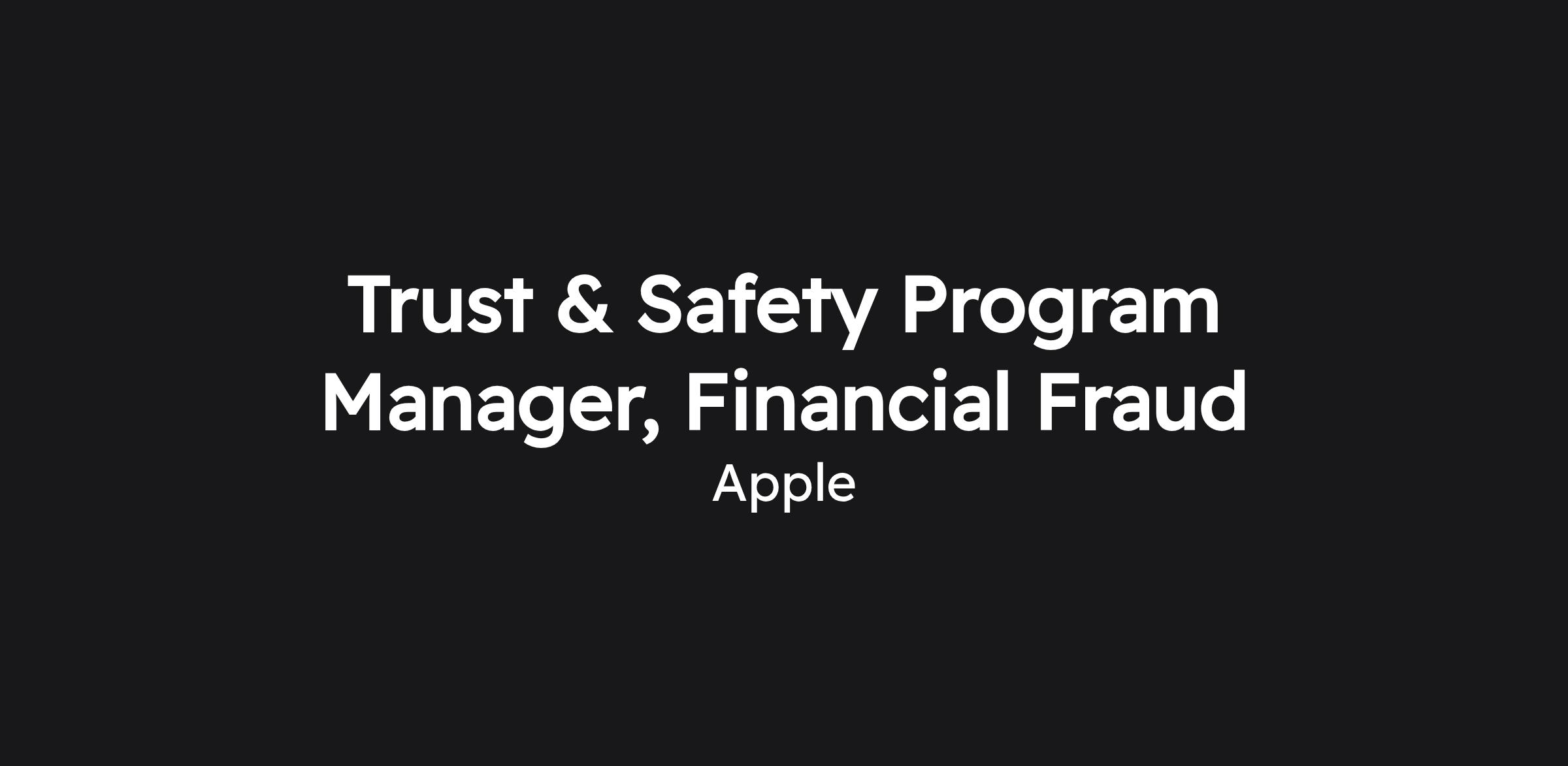 Trust & Safety Program Manager, Financial Fraud