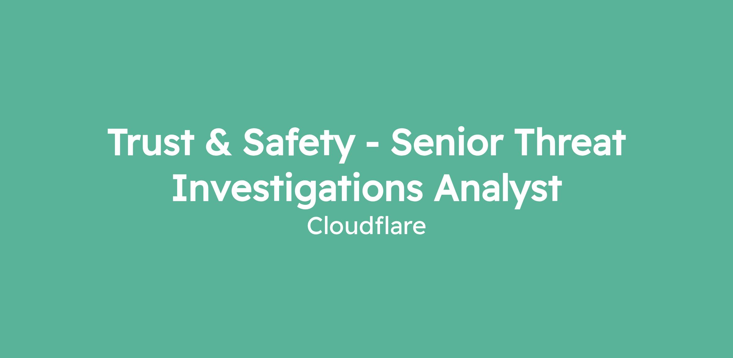 Trust & Safety - Senior Threat Investigations Analyst