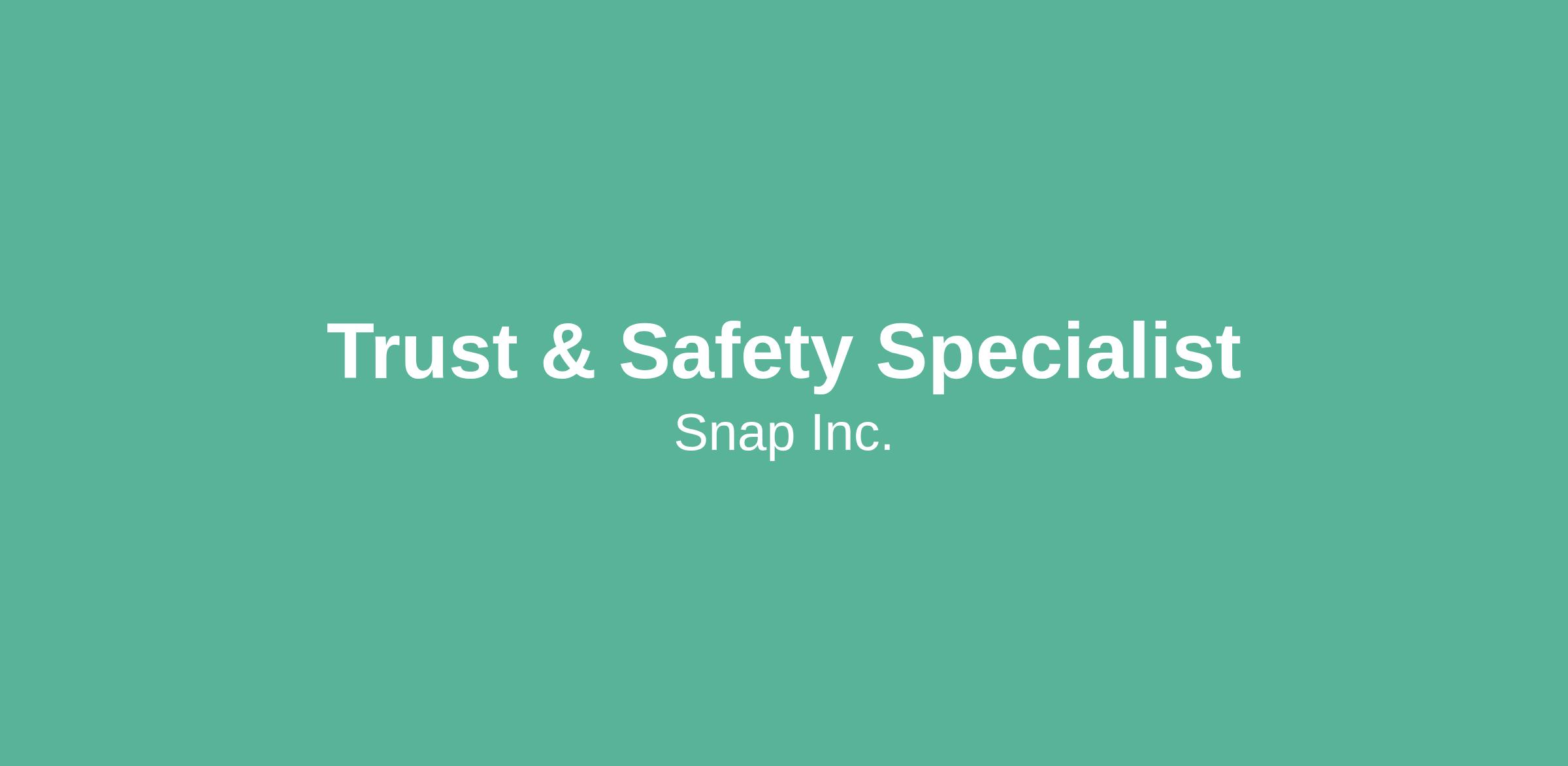 We’re looking for a Trust & Safety Specialist to join Team Snapchat! We’re looking for someone who is able to keep a cool head under pressure, and is excited about improving workflows and proactively seeking ways to enhance the Snapchat experience. From developing support resources to tracking and escalating community issues, we’re looking for a utility player who is eager to help our community, keep Snapchatters safe, and isn’t afraid to roll up their sleeves and support wherever needed.