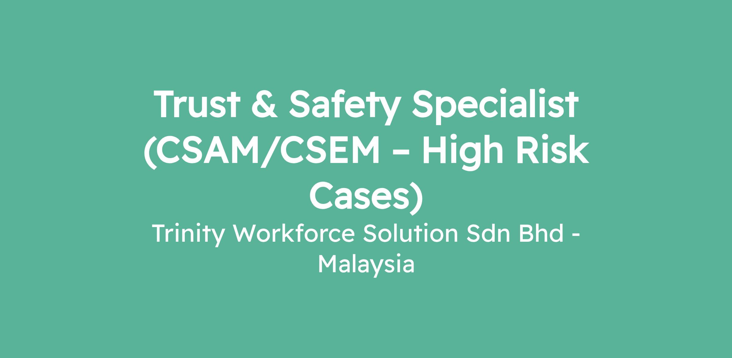 Trust & Safety Specialist (CSAM/CSEM – High Risk Cases)