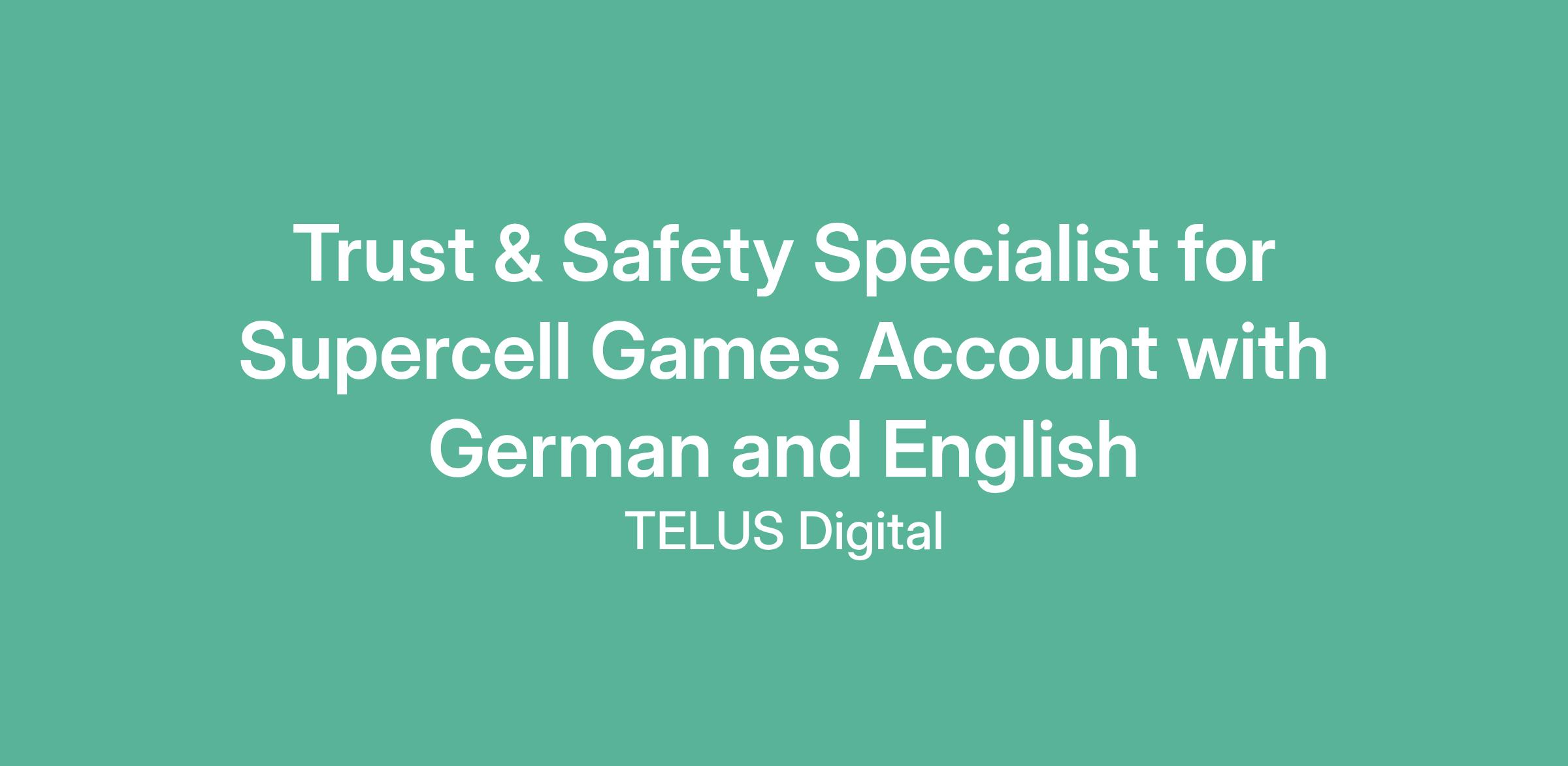 Trust & Safety Specialist for Supercell Games Account with German and English