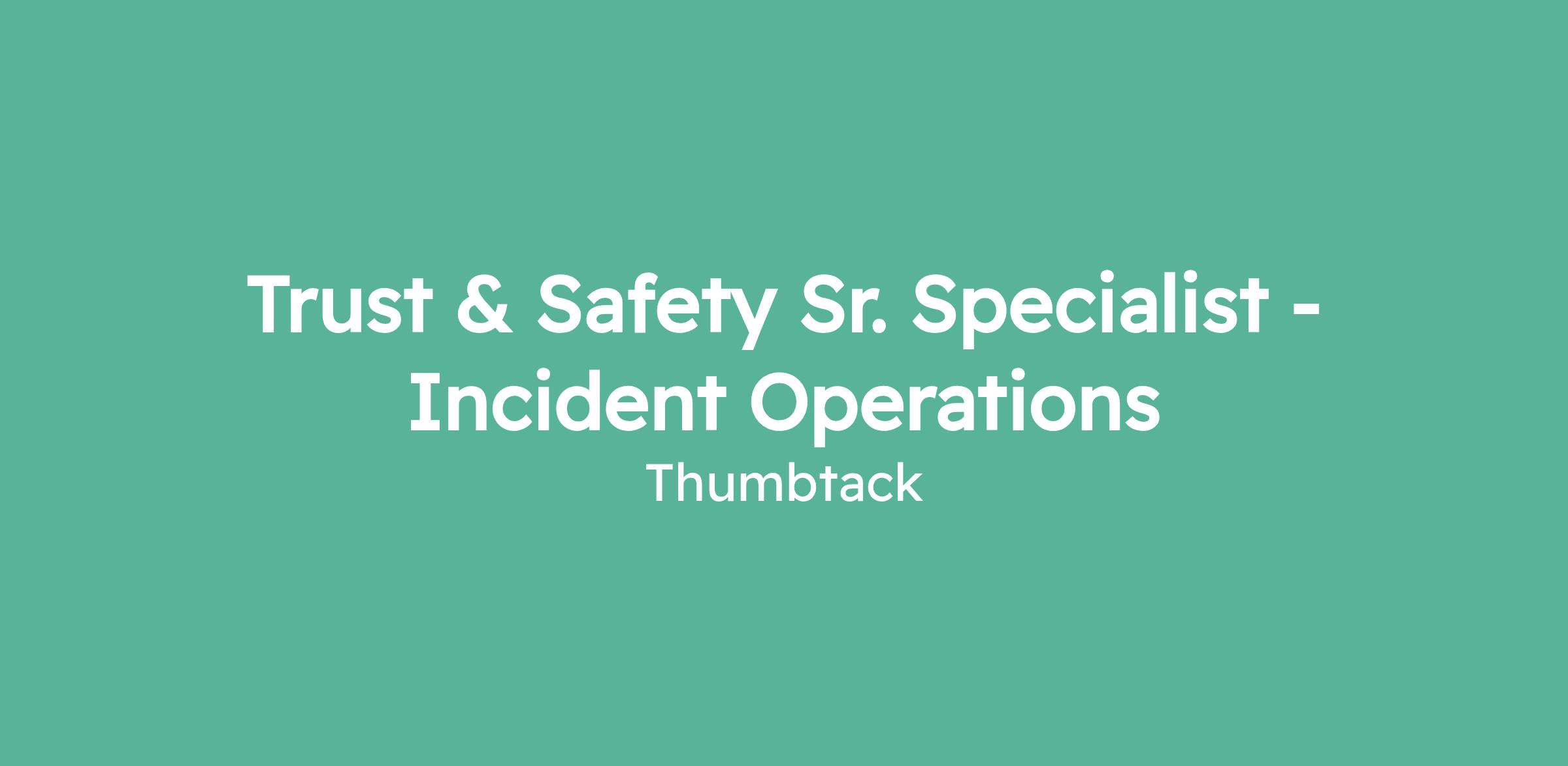 Trust & Safety Sr. Specialist - Incident Operations
