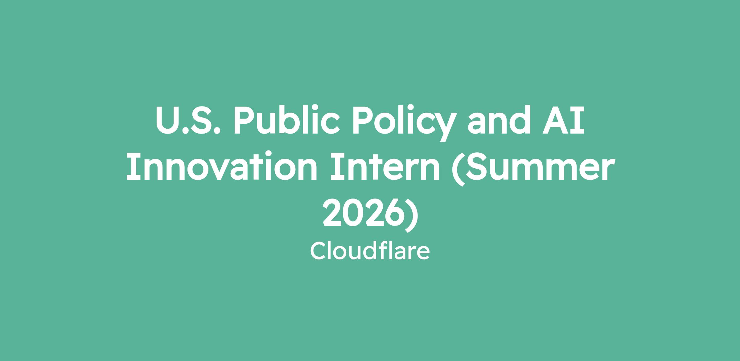 U.S. Public Policy and AI Innovation Intern (Summer 2026)