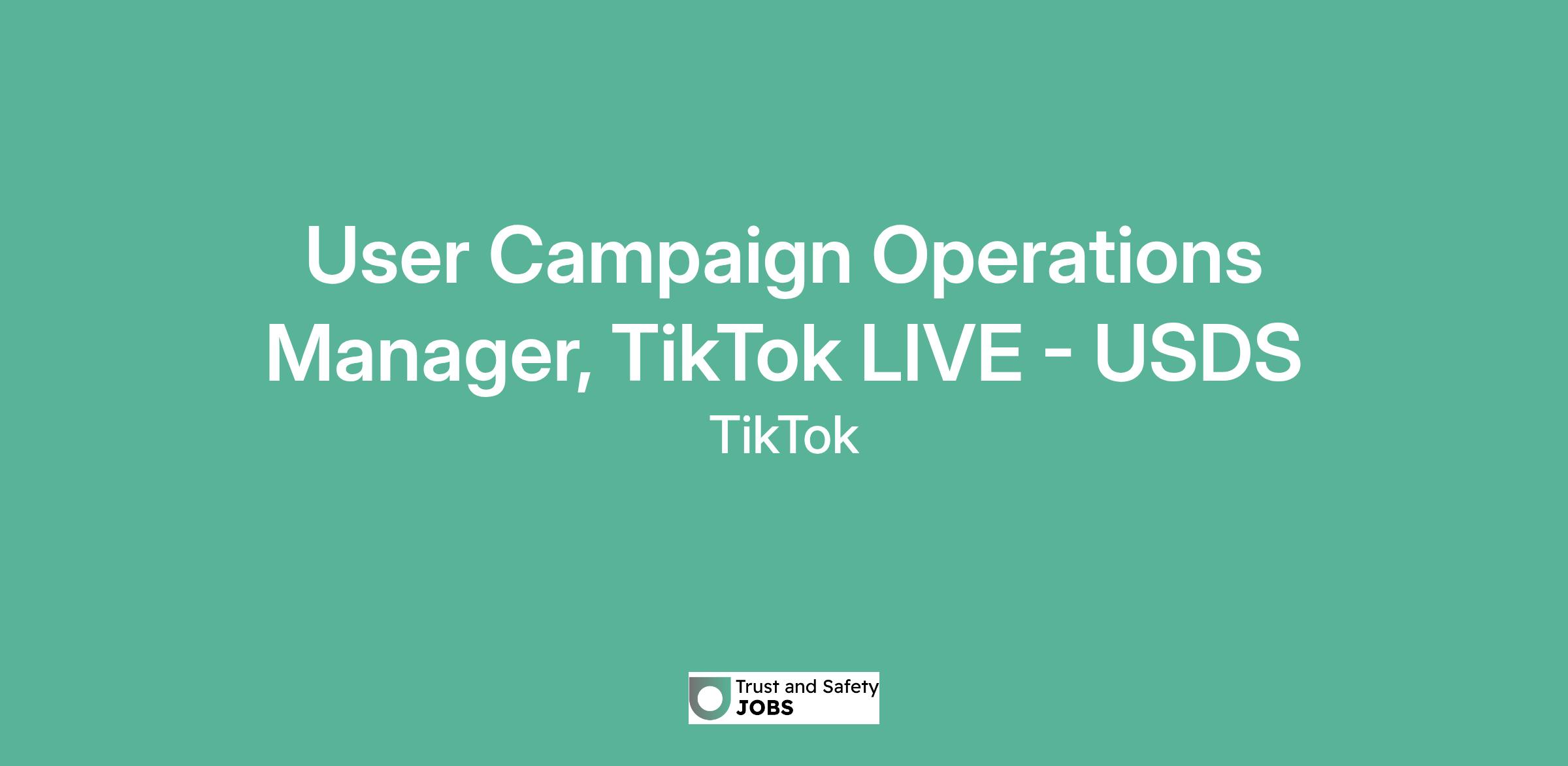 User Campaign Operations Manager, TikTok LIVE - USDS