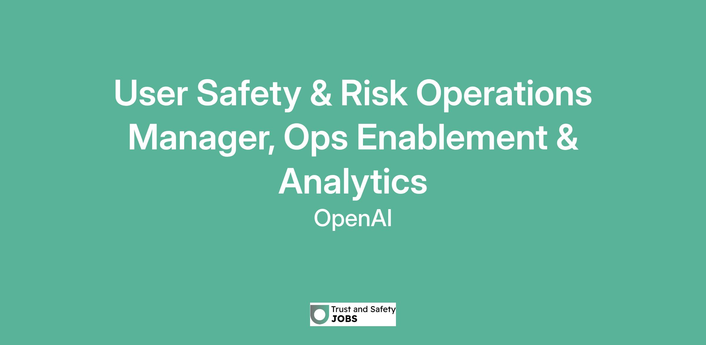 User Safety & Risk Operations Manager, Ops Enablement & Analytics