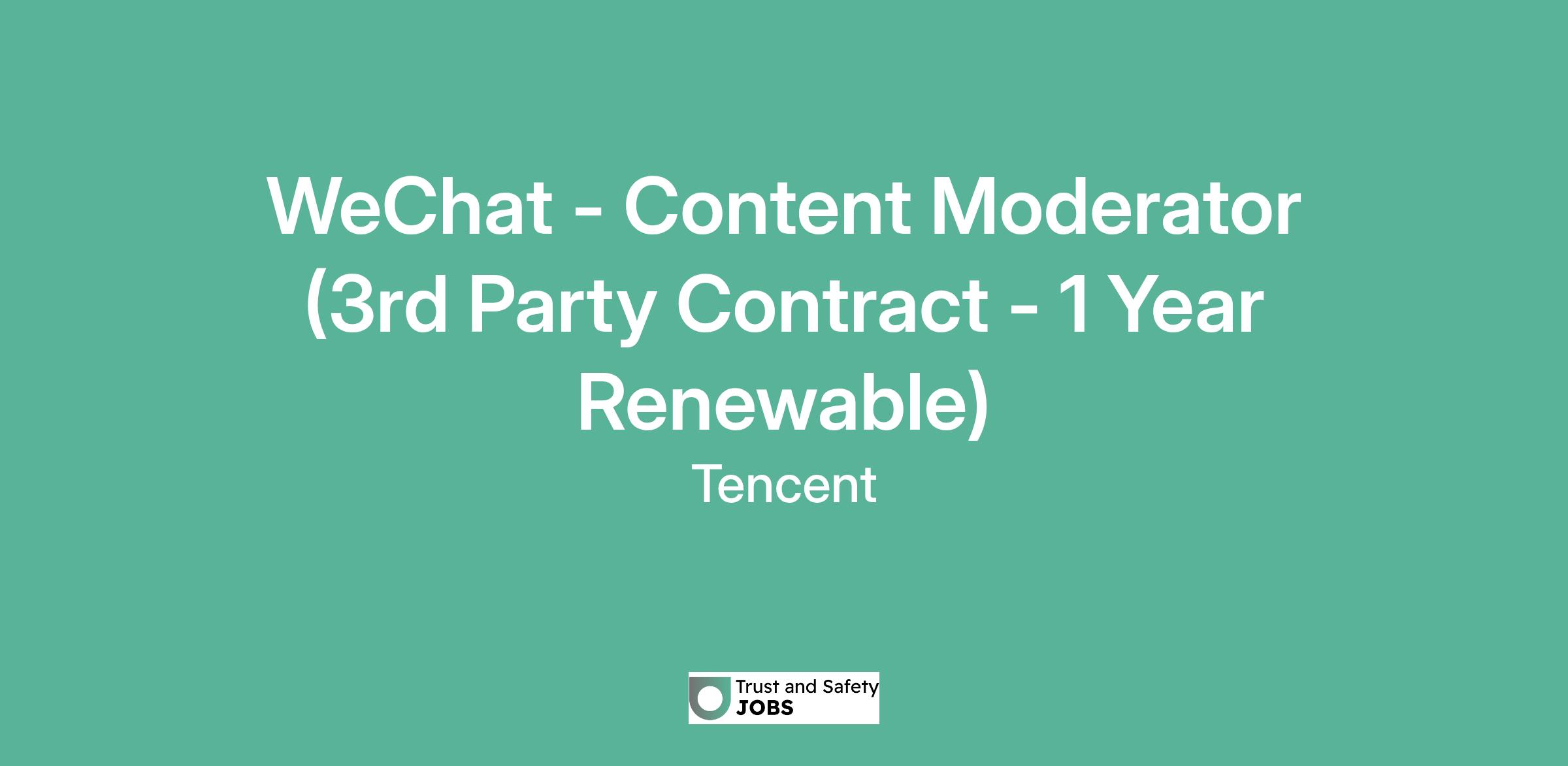 WeChat - Content Moderator (3rd Party Contract - 1 Year Renewable)