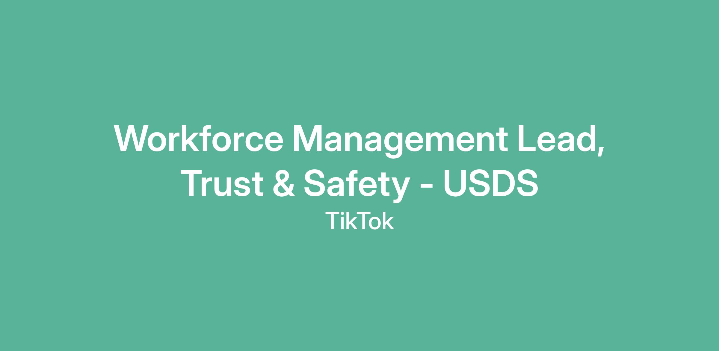 Workforce Management Lead, Trust & Safety - USDS