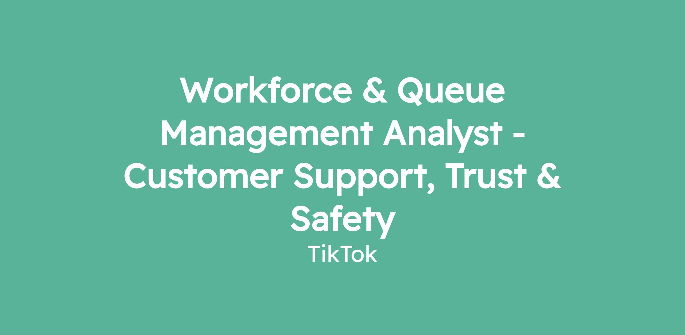 Workforce & Queue Management Analyst - Customer Support, Trust & Safety