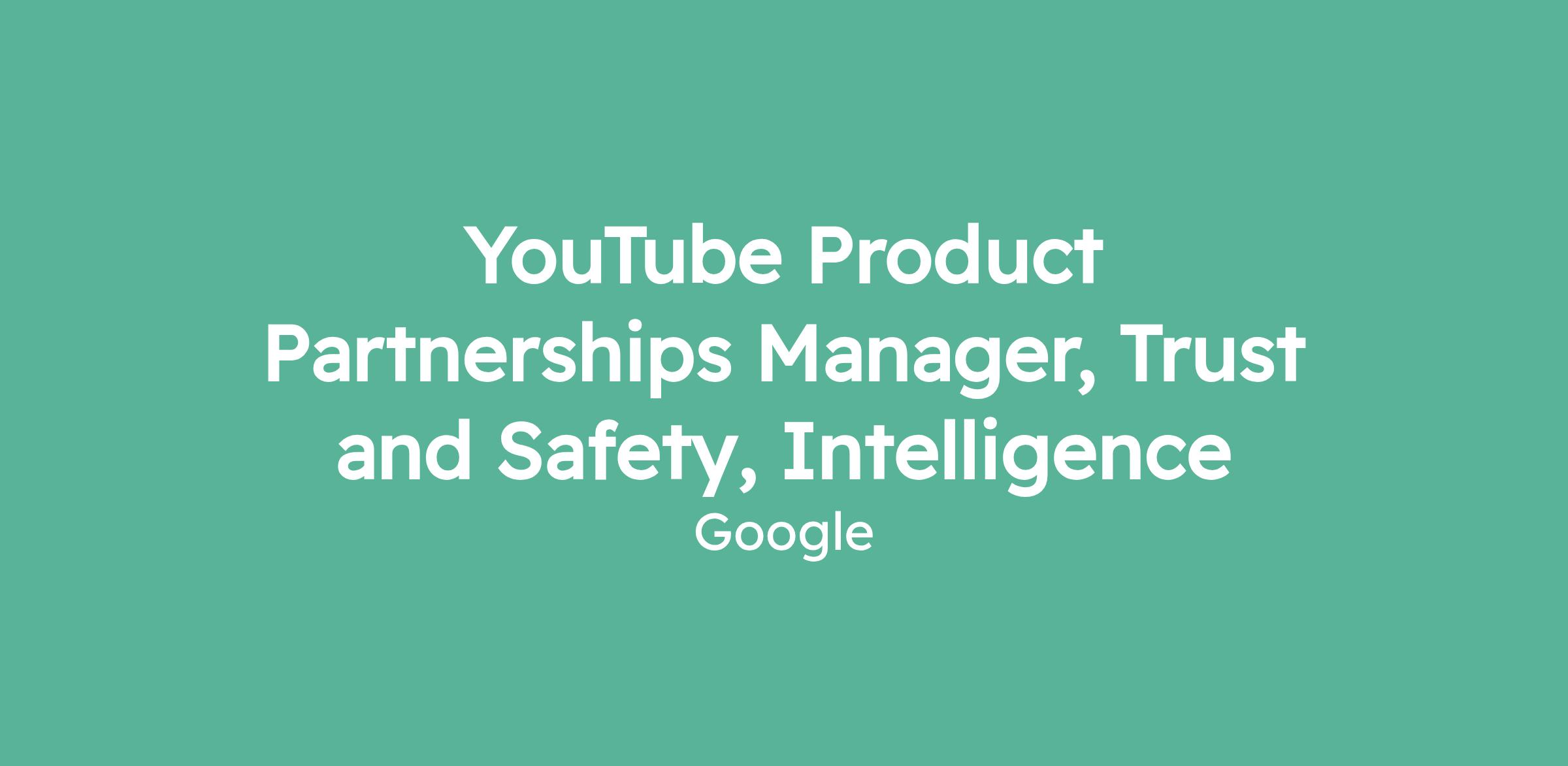 YouTube Product Partnerships Manager, Trust and Safety, Intelligence